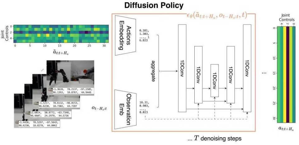 其中,Diffusion Policy 利用扩散模型生成动作序列,在模拟和真实世界的多种任务中表现出色,仅需 50-150 个演示(约 15-60 分钟的遥操作数据)即可完成训练。