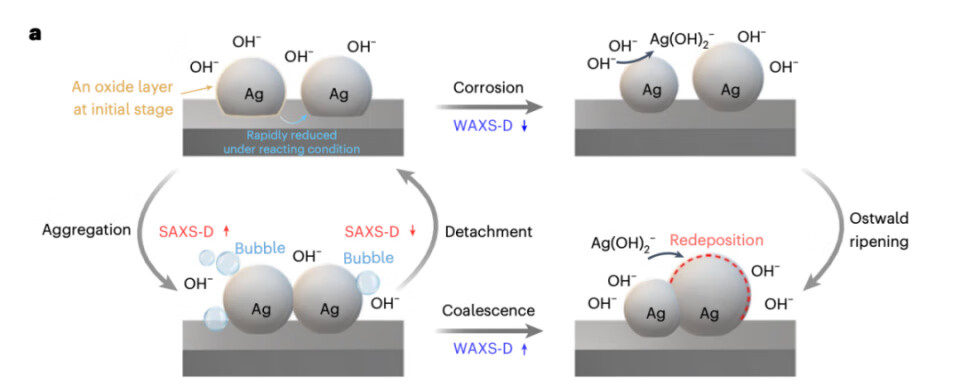 图|Ag 纳米粒子在稳定性测试过程中的结构演变机制示意图(来源:Nature Nanotechnology)