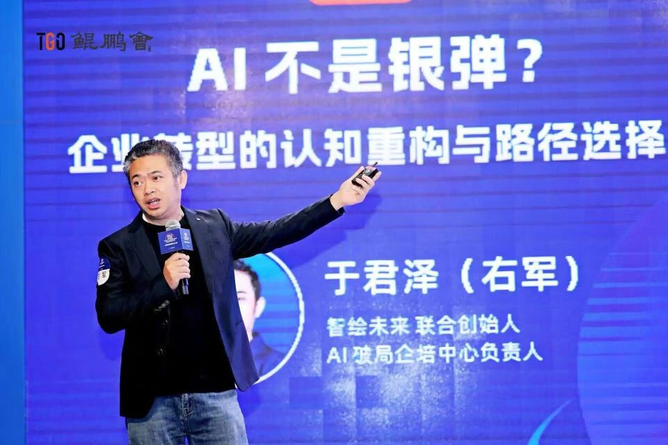 智绘未来 联合创始人,AI 破局企陪中心负责人右军在《AI 不是银弹?企业转型的认知重构与路径选择》的分享中,统剖析了企业 AI 转型的认知误区与实施路径。围绕 “认知重构 - 痛点诊断 - 路径选择” 展开,为企业提供了一套务实的行动框架。