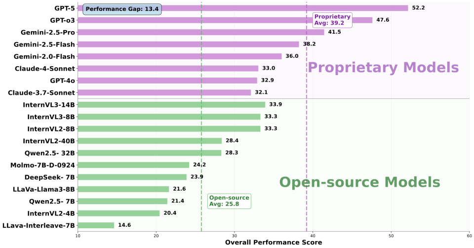 多模态大模型并不具备具身智能,目前在BEAR基准上表现最好的模型,GPT-5,也仅仅有52%的成功率。