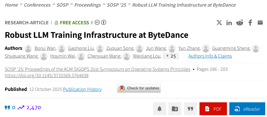 字节跳动自研了一套名为ByteRobust的系统,刚刚登上了计算机系统顶级会议SOSP 2025。