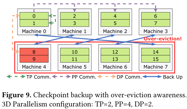 当过度驱逐发生时,即使整个并行组被驱逐,每台机器的备份仍然存在于其他组中,确保了检查点的可用性。