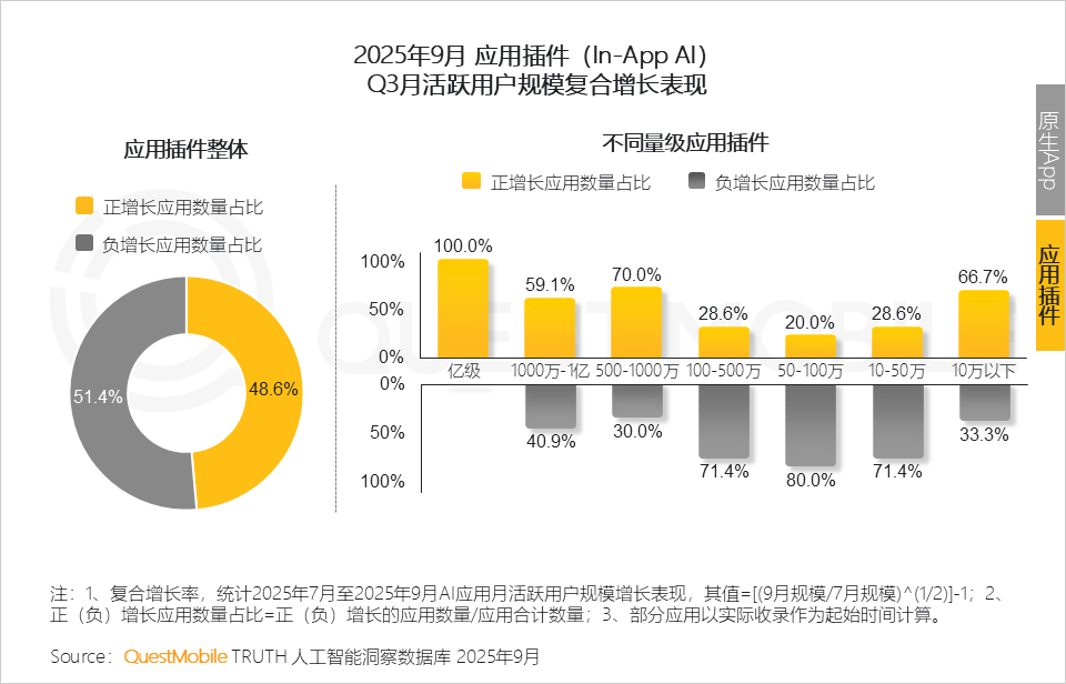 QuestMobile数据显示,三季度插件形态应用超半数呈负增长。