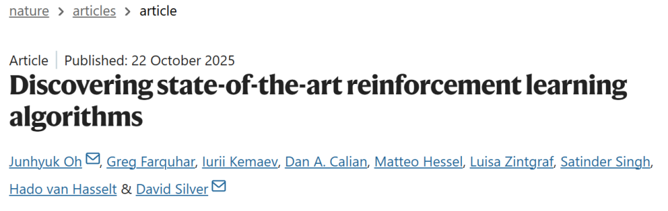 值得注意的是,该团队的负责人、通讯作者是强化学习领域的引领研究者 David Silver,他也曾领导了著名的 AlphaGo 项目,常被称为「AlphaGo 之父」。截至目前,David Silver 的引用量已接近 27 万。本研究共有四位共同一作:Junhyuk Oh、Greg Farquhar、Iurii Kemaev、Dan A. Calian。