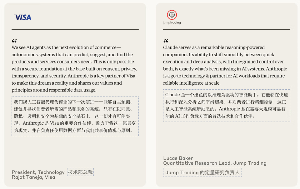 熟悉的VISA也说Claude是他们的主要合作伙伴。