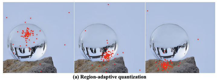 同时,我们注意到现有的量化机制 (quantization) 都是对图像块 (patch) 逐一量化,而图像中物体一般都是形状不规则的,因此我们设计了区域自适应的量化 (Region-Adaptive Quantization) 方案。该方案可以进一步降低潜在特征空间的冗余度,提高视觉 tokens 的利用效率。