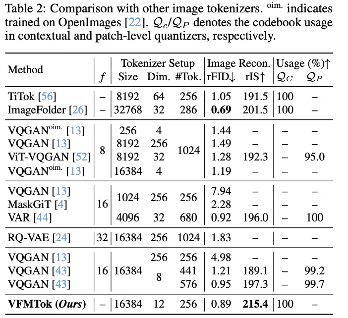 这一发现凸显了预训练视觉基础模型 (VFMs) 构造高质量视觉 Tokenizer 的巨大潜力。