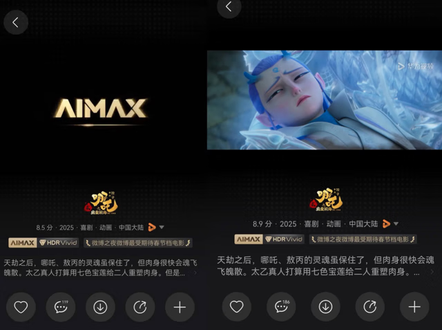 华为视频AiMax影院版本通过特定“HDR Vivid”标识,直接向《哪吒2》在线观众传递了这一技术信息。大家在谈论剧情的同时,也会惊叹于“画面太炸了”“色彩太美了”。Vivid这个原本有些生涩的技术名词开始走入大众视野。