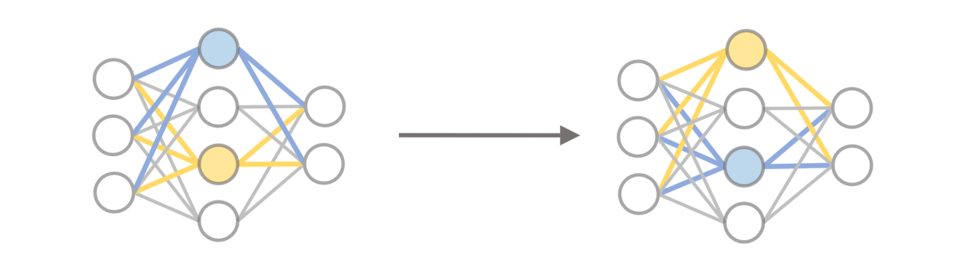 图1 置换对称:交换隐藏层两个单元及其关联权重,函数保持不变
