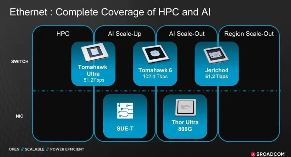 博通无疑是这次 ESUN 的最大赢家之一。它一直试图让以太网同时承担起纵向扩展 与横向扩展 的双重使命。作为网络业务的“基本盘”厂商,博通在英伟达主导 AI 芯片叙事后,一度失去了定义未来网络的主导权。