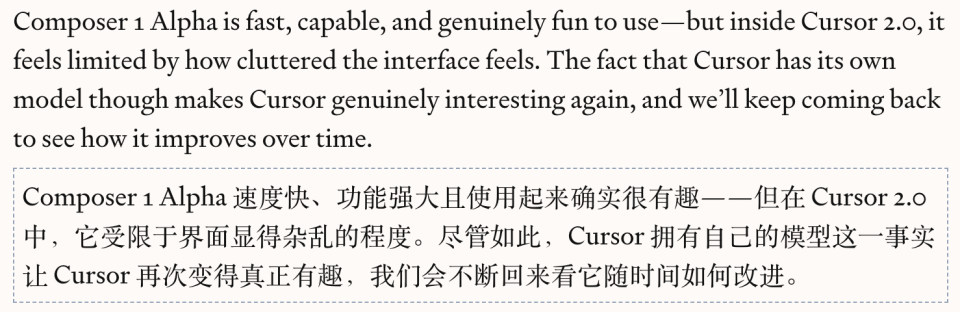 在更新Cursor到2.0版本后,我们第一时间体验了这个模型。