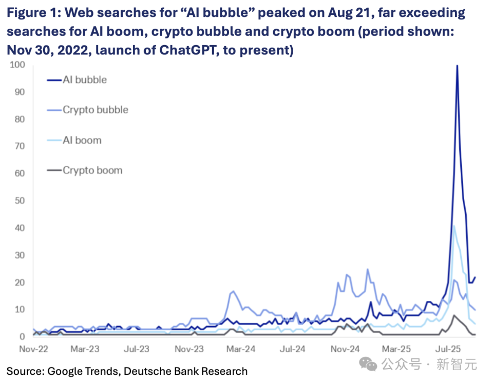 不过,根据谷歌趋势的数据,上个月中,网络上对「AI泡沫」的谷歌搜索量急剧下降。