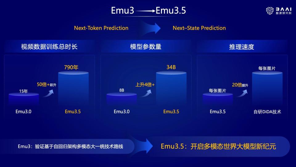 2025年10月30日,智源研究院在北京举办“悟界 · Emu系列技术交流会”,智源研究院院长王仲远、多模态大模型负责人王鑫龙,发布了Emu3.5多模态世界大模型。这项工作的发布开启了人工智能从语言学习向多模态世界学习演进的新纪元,率先指明了多模态 Scaling 的新范式。而Emu作为“悟界”系列模型的重要组成部分,标志着AI正加速从数字世界迈向物理世界的关键一步。