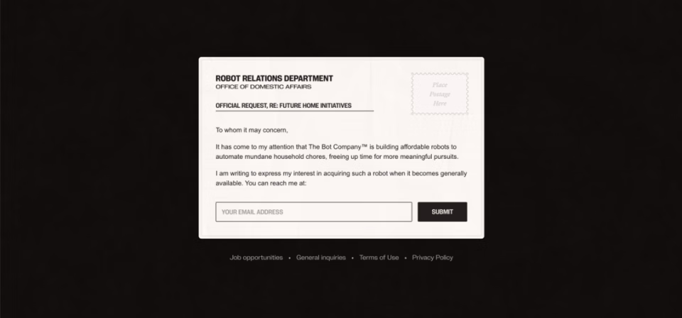 考虑到 The Bot Company 对外透露的信息少之又少,也没有任何产品公布,这样的估值增长速度确实不常见。公司网站上只有简单的一句话:“我们正在打造能够自动化日常家务的可负担机器人。”至于这些机器人的外观、功能、上市时间、价格定位,公司始终保持沉默。