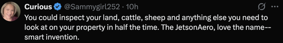当然,这类飞行器也有独特的使用场景。比如农场主可以用它在更短的时间内巡视自己的土地、牛群、羊群,以及其他一切需要查看的地方。