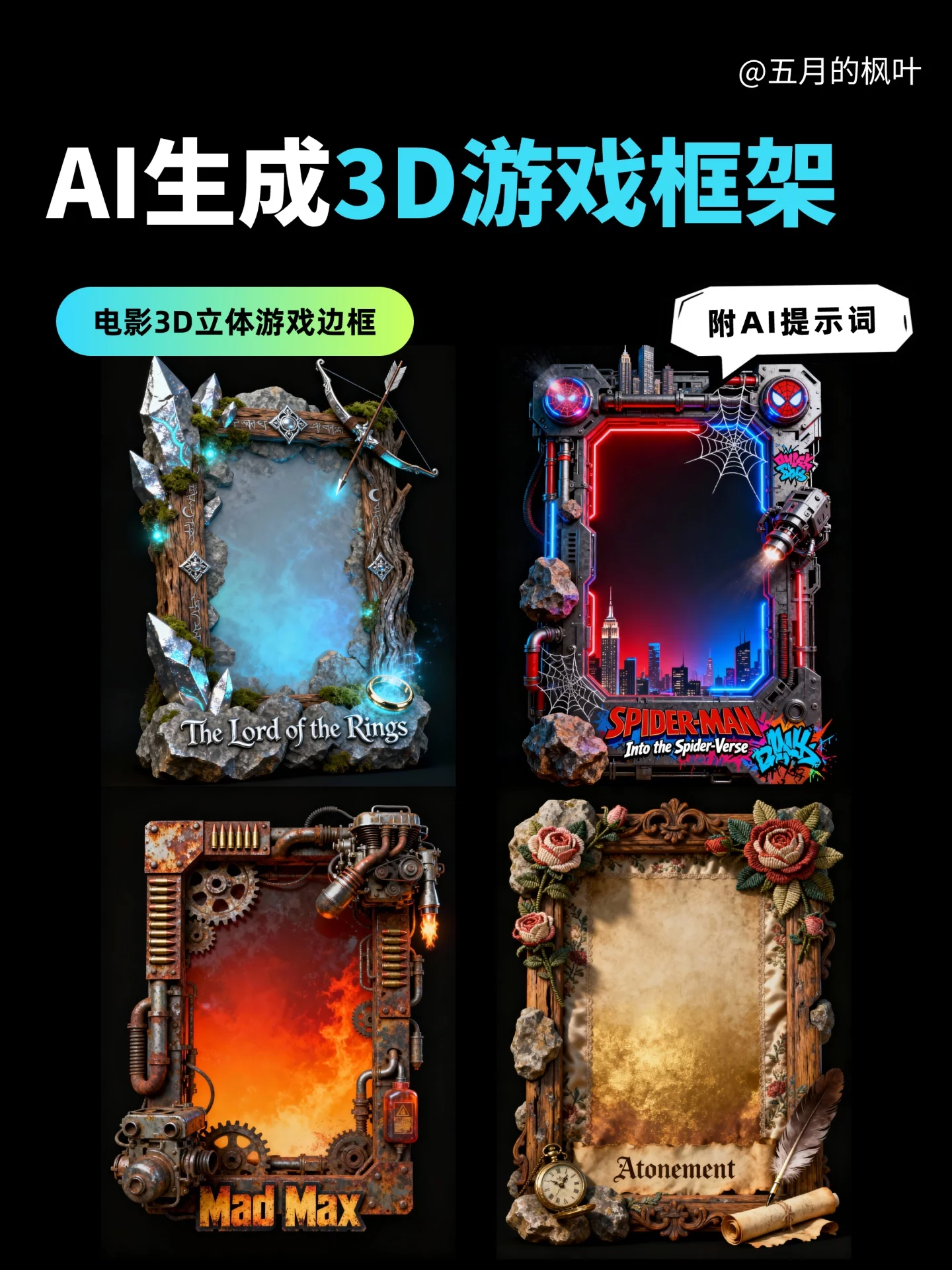即梦AI帮你解决所有问题!现在只要5分钟,输入提示词就能生成专业级3D游戏框架,附8种热门风格的详细提示词,手残党也能秒变UI大佬!