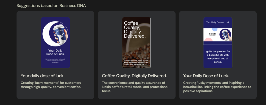 如果你没想法,它下面还会默认给一些建议,比如“推个新品”、“搞个促销”。谷歌一贯作风,I'm feeling lucky.