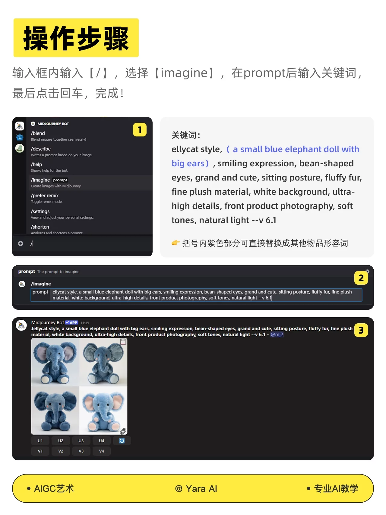 玩偶使用 Midjourney 生成,以下为制作步骤: