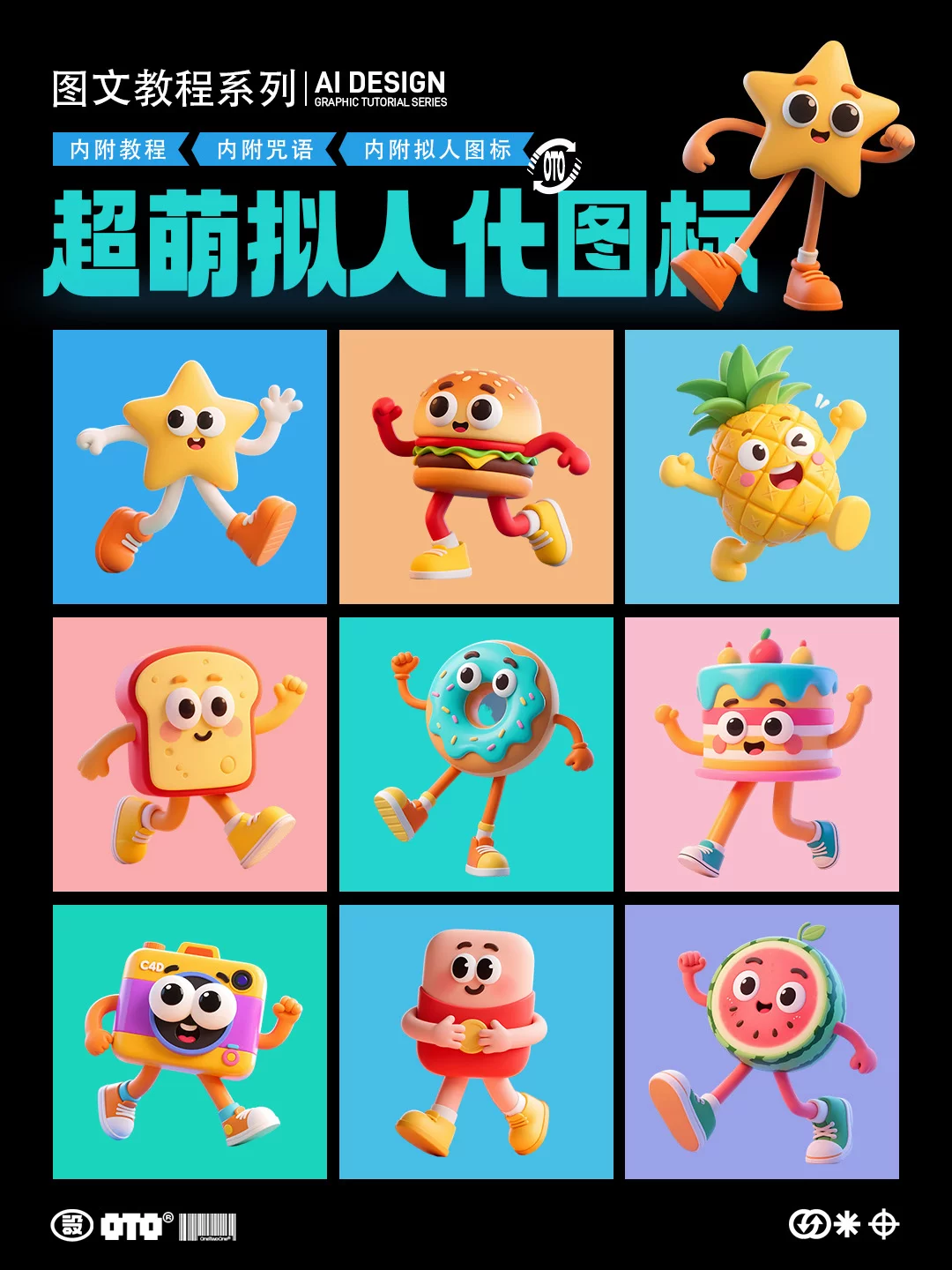 今天来分享一组即梦生成拟人化图标简单的设计思路,越生成心情越澎湃,拟人化图标让人更亲切和更有记忆点,简单咒语小白更容易上手!