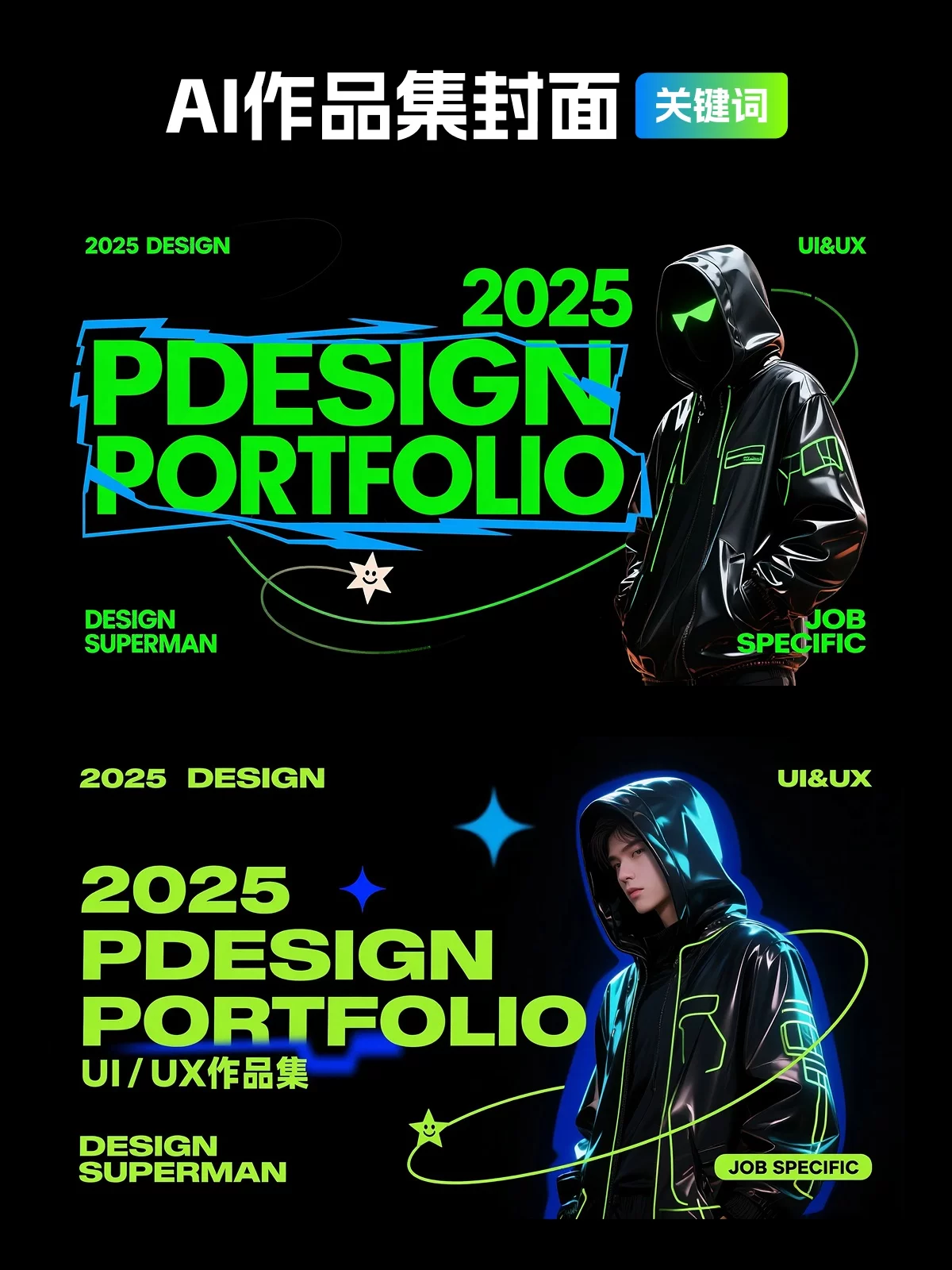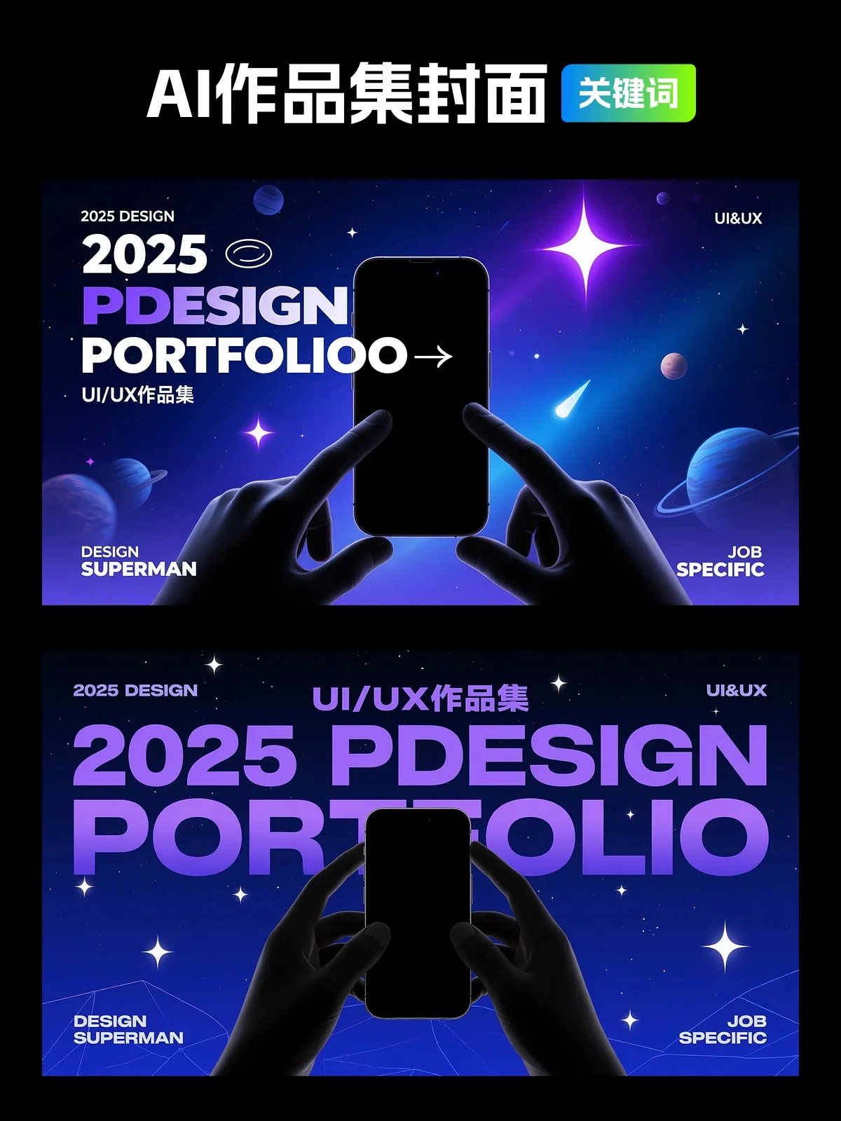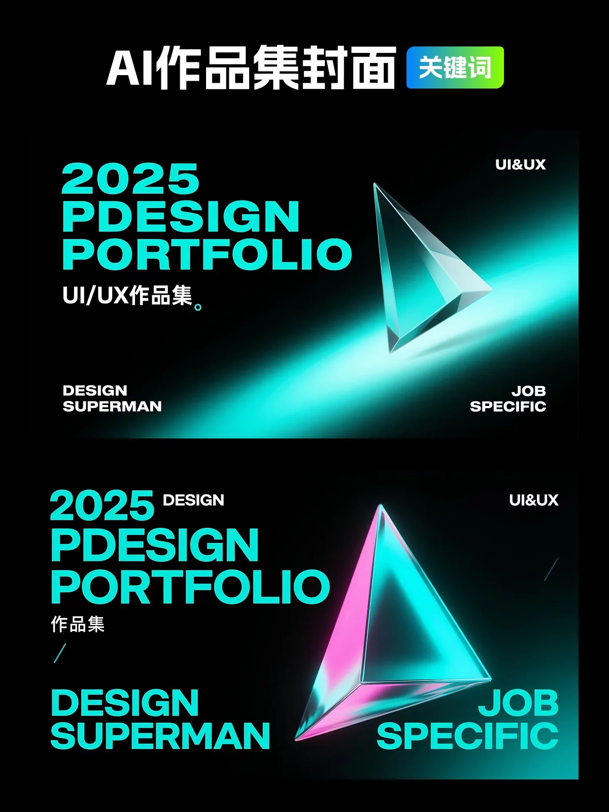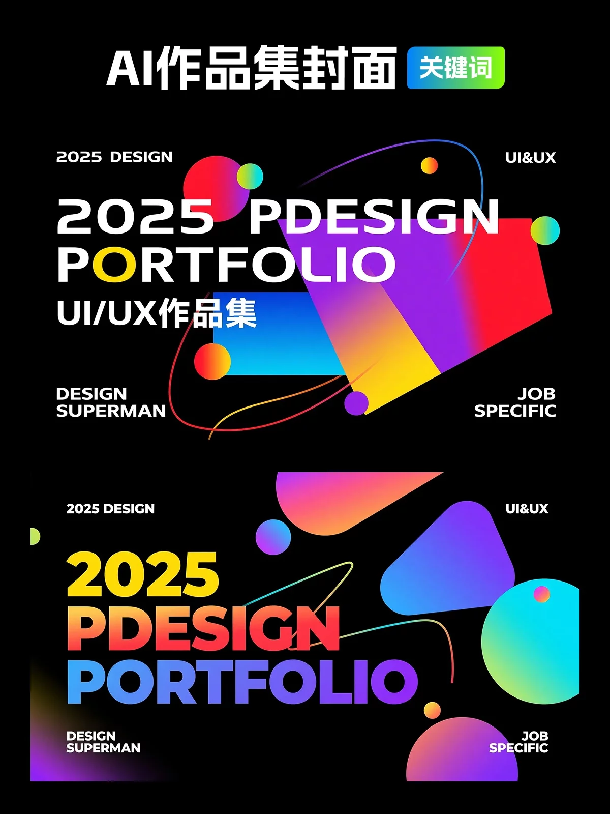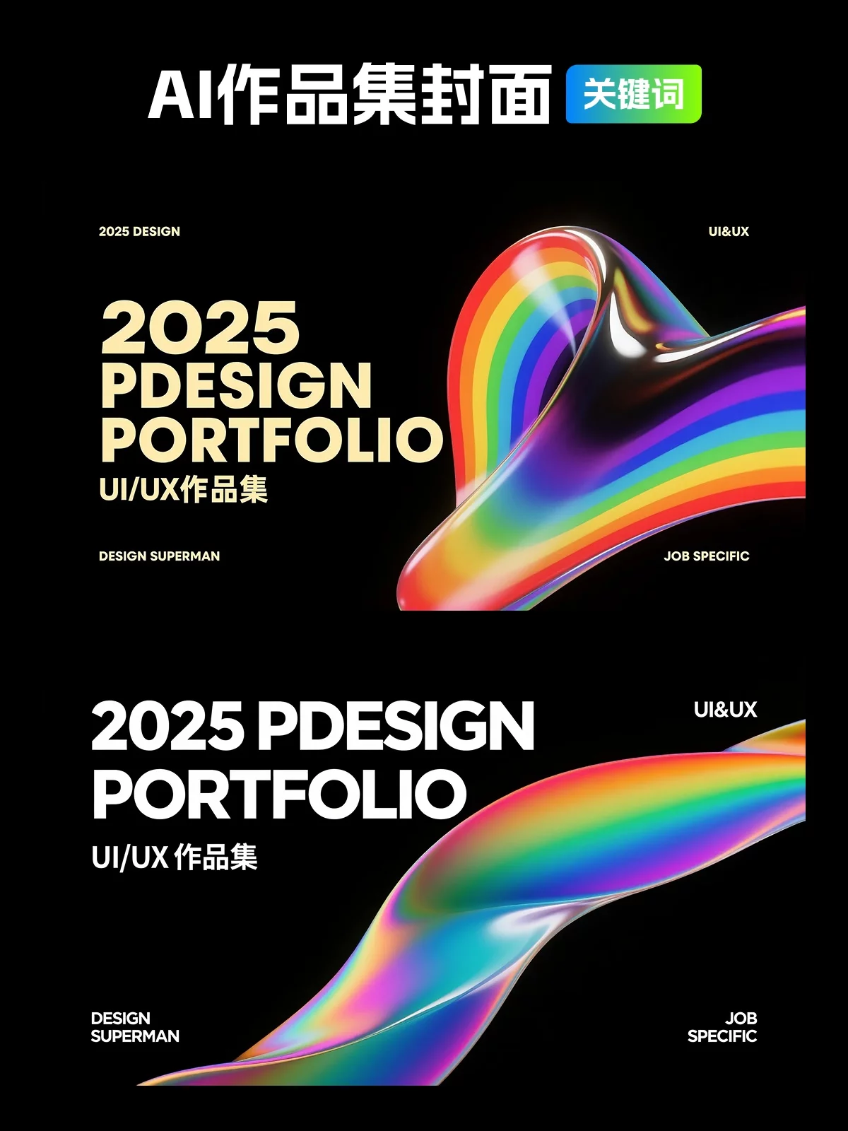 今天尝试了一下用AI制作作品集封面,效果还是真不错!每组次采用背景关键词+固定关键词组成,出图效果可直接使用,大家快去试试吧!