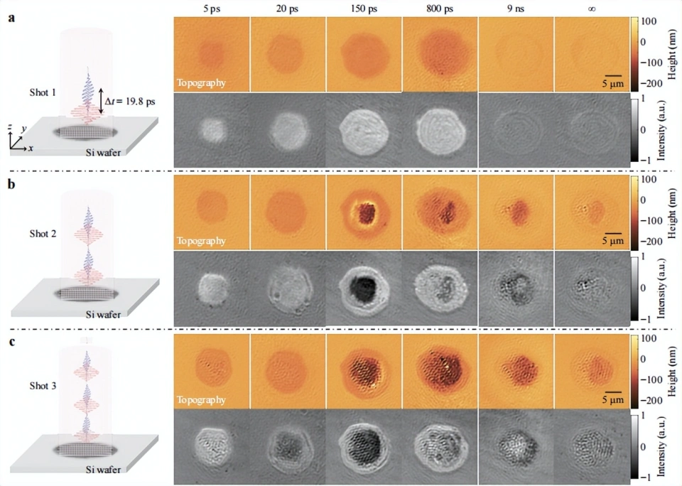 近期,深圳大学闵长俊教授团队提出了一种双模态超快显微镜系统,结合二维反射率成像和三维形貌成像技术,空间分辨率和时间分辨率分别达到 236 纳米和 256 飞秒,成功捕捉到硅表面激光诱导周期性表面结构的形成、增强和擦除过程,为理解激光与材料的相互作用提供了更全面的视角。
