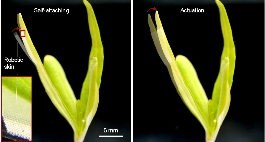 在第二个案例中,他们展示了一款机器人皮肤。相关实验里包含一个换能器和一片茶叶,中间放置着机器人皮肤。当打开超声的时候,皮肤会自动贴在茶叶上,由于它会产生反作用力,所以就会带着茶叶进行摆动。值得一提的是,这款机器人皮肤非常薄,贴在物体上几乎不会带来体积或重量的增加。