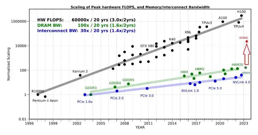 正是GPT的横空出世,重新定义了内存的价值。AI的性能,很大程度上去取决于它们存储数据的方式,访问数据的速度,以及可以储存的数据的规模。计算是能源的处理形式,但能源也越来越多地用于数据不断写入、读出与传输。彼时,为内存这一标准化的“大宗商品”带去新生的是HBM。