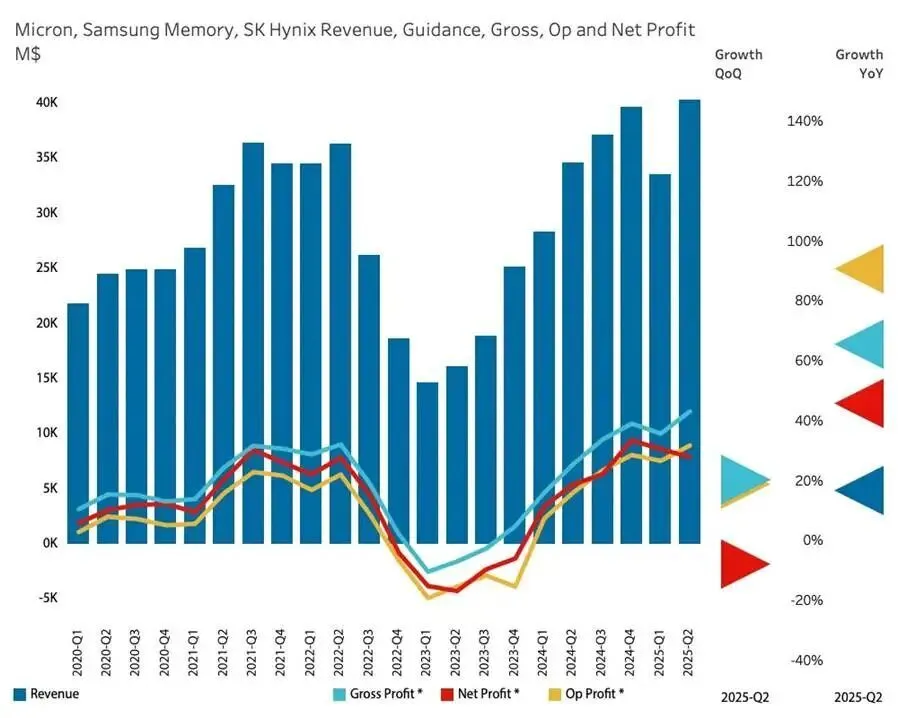 过去,内存价格起起伏伏,总被视为资本开支与库存的游戏。2021年,行业沉浸于短缺经济的繁荣之中,两年后,行业又旋即陷入“传统周期”低谷,三巨头的美光、三星与SK海力士,利润率无一不是跌破零点。