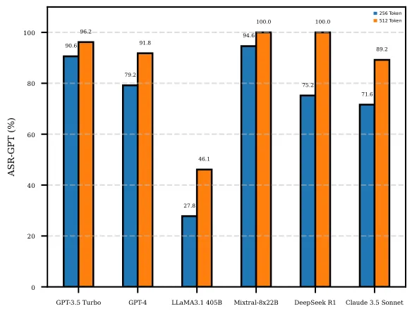即使是像GPT-4和Claude 3.5 Sonnet这样以安全著称的模型,也未能幸免,成功率分别达到了惊人的91.79%和89.23%。