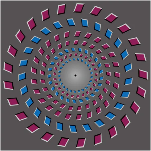 这样的视错觉图,基本上都是利用了我们这个会自己运动的特征,来做出动态效果的。