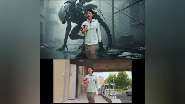 比如,我的好基友@GongWangG,在组里用Wan2.1-Vace,玩的实验小demo,Wan2.2 Animate不是做角色替换嘛,但用Wan2.1-Vace,也可以用来保持角色一致性,但更改掉整个背景做实拍合成VFX。