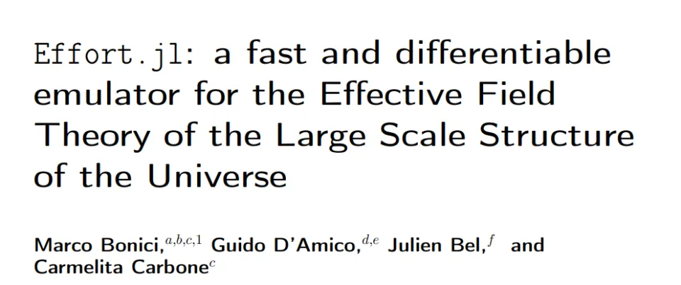 而在未来几年,对于即将到来的 DESI (Dark Energy Spectroscopic Instrument,暗能量光谱仪) 和 Euclid(欧几里得空间望远镜)等下一代大型巡天项目,这种能力尤为关键——这些项目将产生比以往多出数个数量级的数据量,传统计算方法根本无力应对。届时 Effort.jl 或将大显身手。