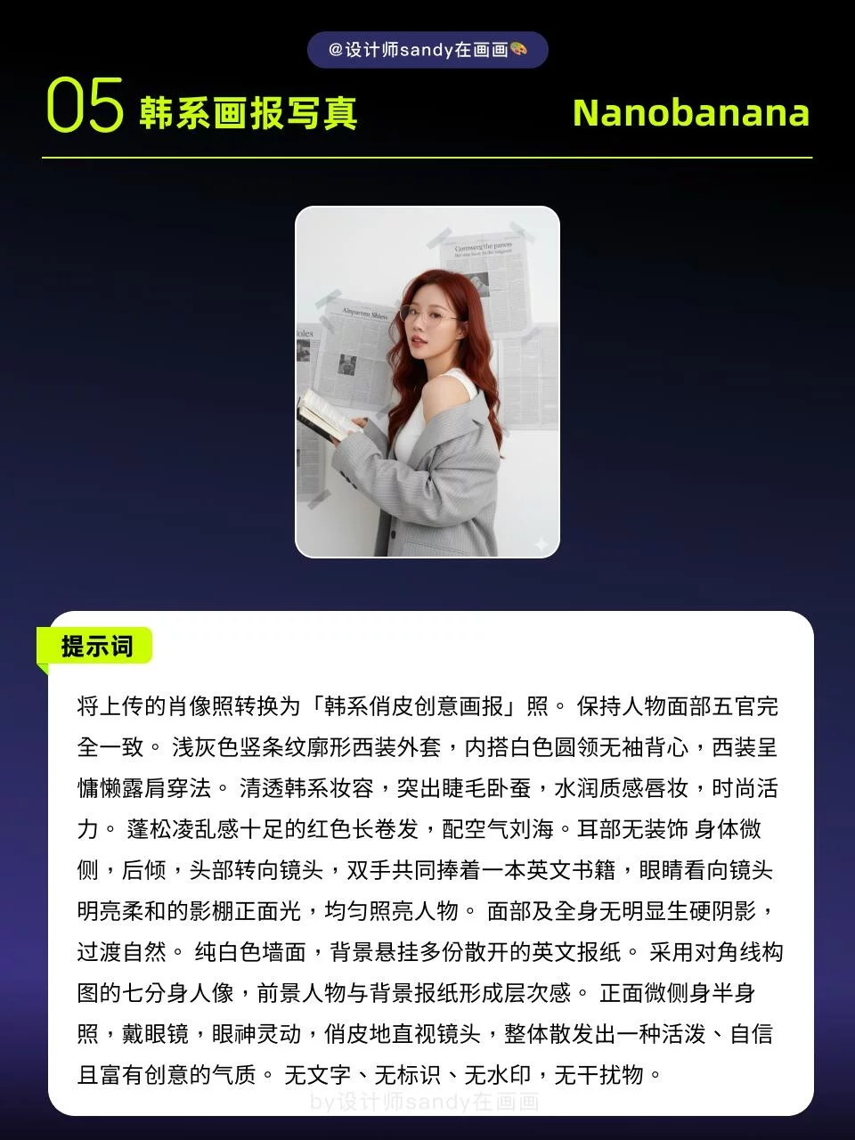 进阶玩法,可以替换指令中的发型、妆容、道具,得到你专属的写真。