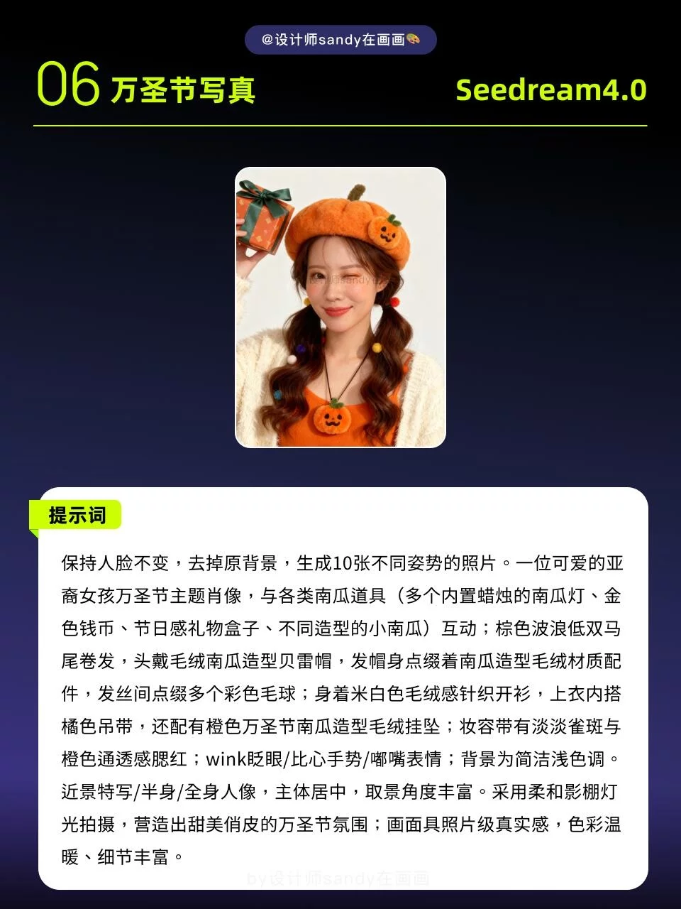 指令分别用到seedream4.0和nanobanana2种模型,图片中已标注,在对应的AI工具里生成即可。