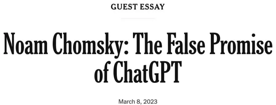 2023 年著名语言学家乔姆斯基在《纽约时报》上写道:「语言的正确解释很复杂,不能仅仅通过浸泡在大数据中就能学会。」