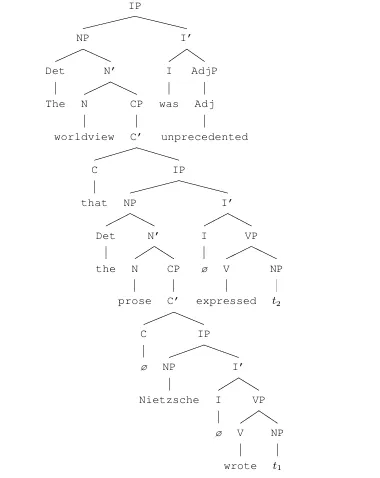这种结构,在语言学里叫「中心嵌入」(center embedding),曾被知名语言学家乔姆斯基称为能定义人类语言与思维的决定性特征。