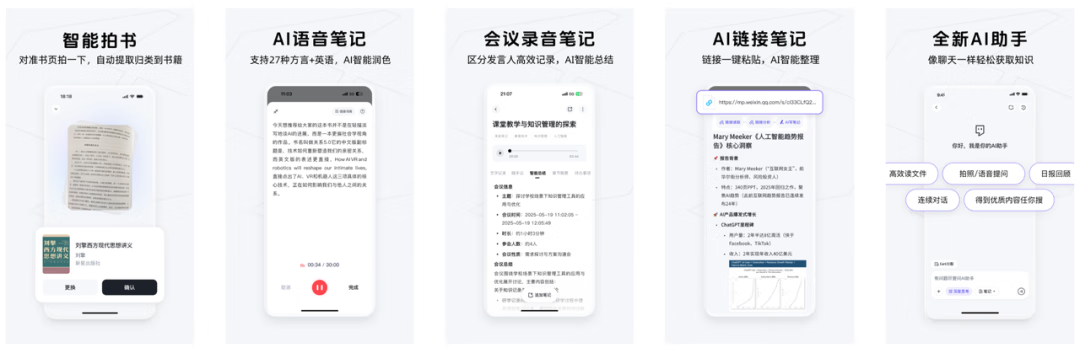 AI多模态记录:提供语音速记(AI自动润色)、链接速记、图片速记(支持“智能拍书”)、文字速记等记录模式。