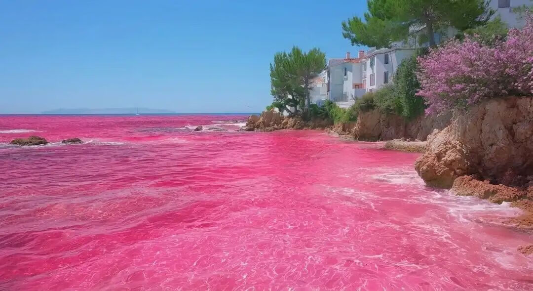 "让水变成粉色":原图 - Nano Banana 1 - Nano Banana 2(来源:@BrentLynch)