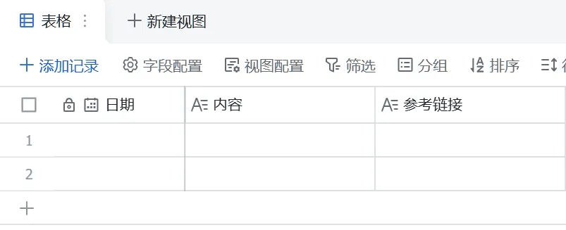 第一步,在你的电脑上,搭建一个新的飞书多维表格,设定好字段,这块不不会的可以去看我之前的多维表格保姆教程,我就不细说了。
