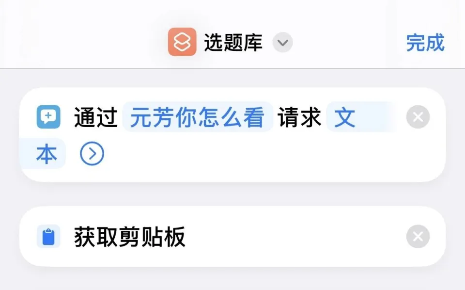 另一个操作是获取剪贴板,也就是我先复制文章链接,再点开快捷指令,它就会自动把我链接拷到剪贴板上。