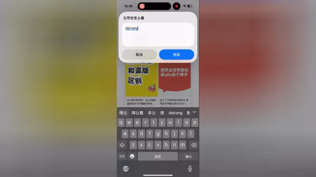 所以一个操作是请求输入,也就是视频里演示的,点开快捷指令之后,手机顶部跳出一个提示框,让我输入文字。