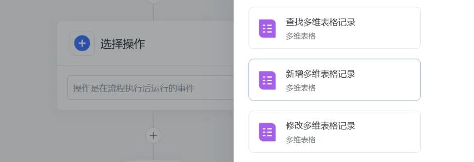 这里,因为我们要做的是新增多维表格记录,所以直接选它。