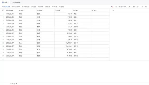 掌握了最基本的记选题,我们可以玩一个稍微复杂一点的case,用快捷指令加多维表格搭一个可视化的全自动记账工具。