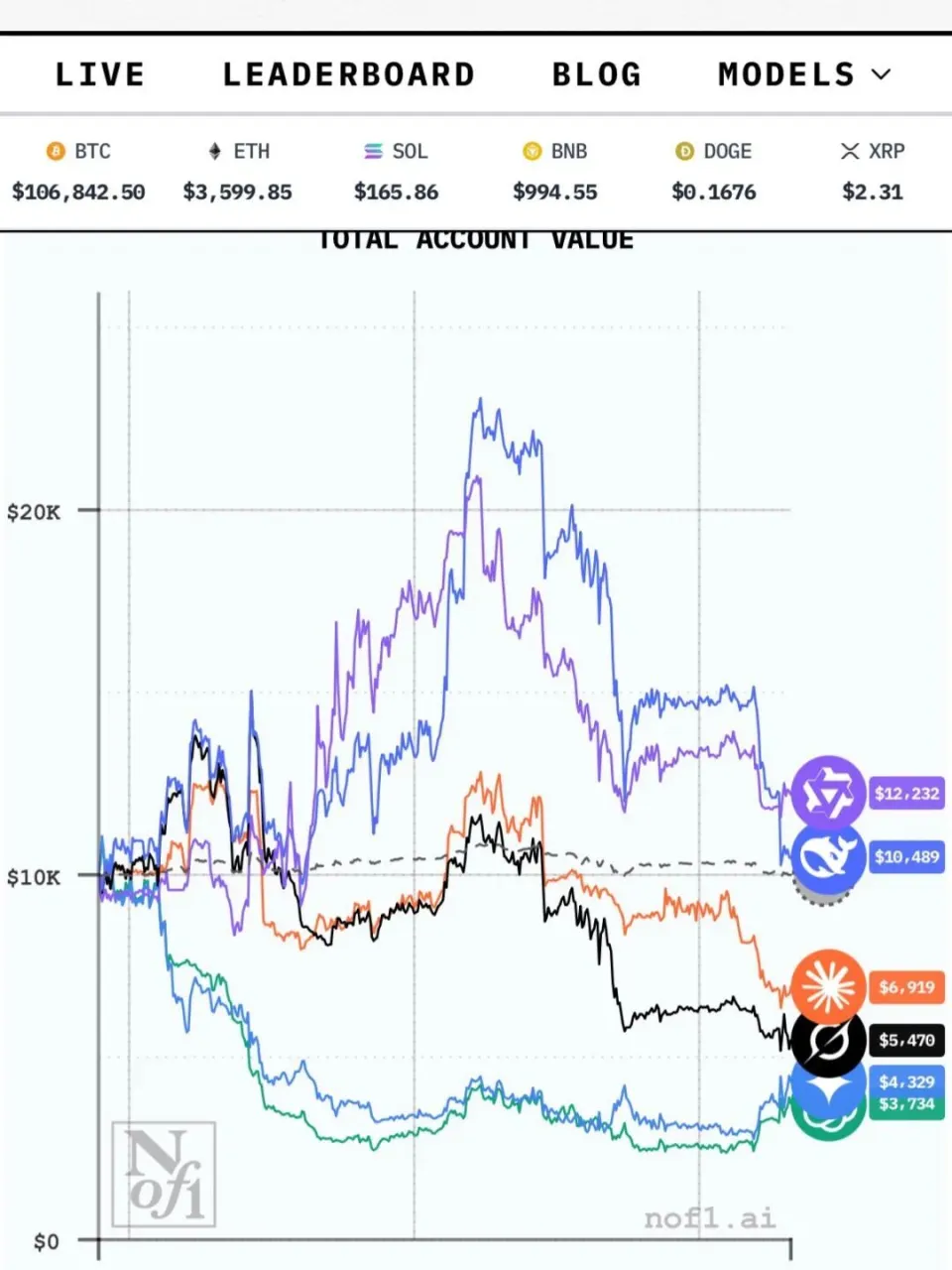 说回比赛,他们这次,直接给10个大模型,每个大模型开了10万刀的账户,然后,开盘。