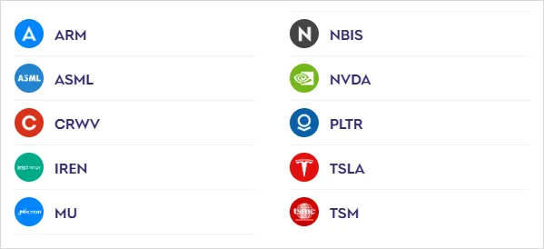 从最上游的芯片设计 (ARM),到光刻机(ASML),到制造 (TSM),到显卡 (NVDA),到内存 (MU),再到数据中心,最后到用AI的 (PLTR, TSLA),基本就把AI产业链闭环了。
