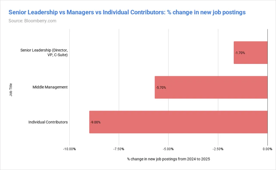 这篇文章算是个民间调查报告吧,作者像个侦探一样,分析了2023至2025年10月期间,近1.8亿个全球招聘信息,然后跟2024年的职位做了一下比较。
