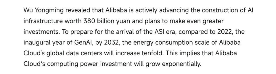 • 大量传统企业已经开始使用 AI:之前国内许多企业虽然通过各种信息工具积累了大量数据,但缺少对话界面,导致无法有效利用这些数据来提升公司运营效率,大模型的出现相当于为这些企业添加了一个非常方便的 UI。这也解释了为什么阿里云 2025 财年 Q3 AI 相关业务同比增长达 100%,而传统云服务业务增长仅约 10%。