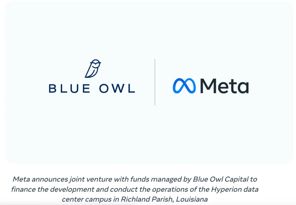 Meta 与 Blue Owl Capital 最近的合作同样吸引了很多关注:Meta 只需出资 20%就能共同投资一个数据中心,其余 80%资金来自外部投资者或国家资本。