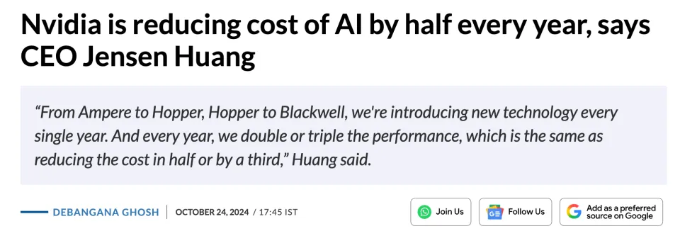 Nivida 曾提出过每年 token 成本可能下降 10-100 倍的估算,考虑到现在所有大厂都在做模型软件和硬件的优化,所以推理成本只会降得越来越低,而一旦推理成本降低势必会带来需求爆发。