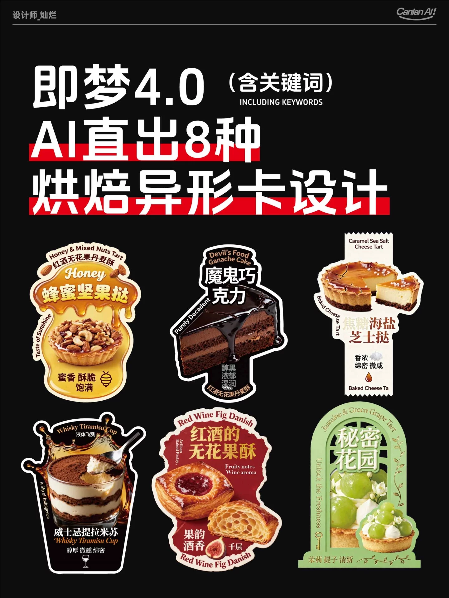 AIGC设计频道 发布于 2天前 提示词灵感!3步用AI搞定8种烘焙异形卡设计 提示词灵感!3步用AI搞定8种烘焙异形卡设计宝子们,大家好我是设计师灿烂,今天和大家分享烘焙异形卡设计,一共6种板式风格的异形卡设计,以前我做烘焙餐饮视觉总是没有想法💡,现在有ai,效率大大提高,关键词已经全部放在画面中啦,大家可以直接使用! 综合 浏览 点赞 收藏